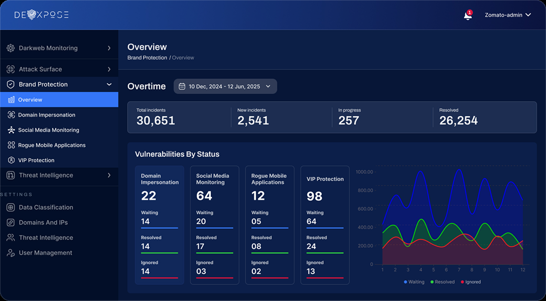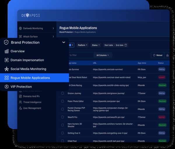 DeXpose provides an all-in-one brand protection solution that combines advanced threat intelligence, dark web monitoring, Al-powered fraud detection, and Fast takedown services. Our platform is designed to offer real-time alerts, proactive mitigation, and seamless integration with your security stack.